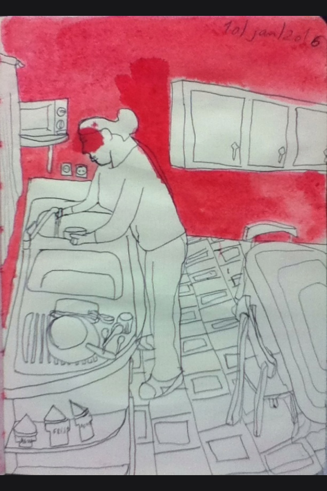 | tinta da china vermelha e caneta preta |